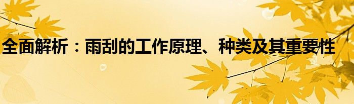 结语:了解雨刮的工作原理、种类及其重要性,对于驾驶员来说是非常必要的。在雨天行驶时,确保雨刮处于良好状态,有助于提高行车安全性。同时,定期维护和更换雨刮,也是保证驾驶安全的重要措施之一。